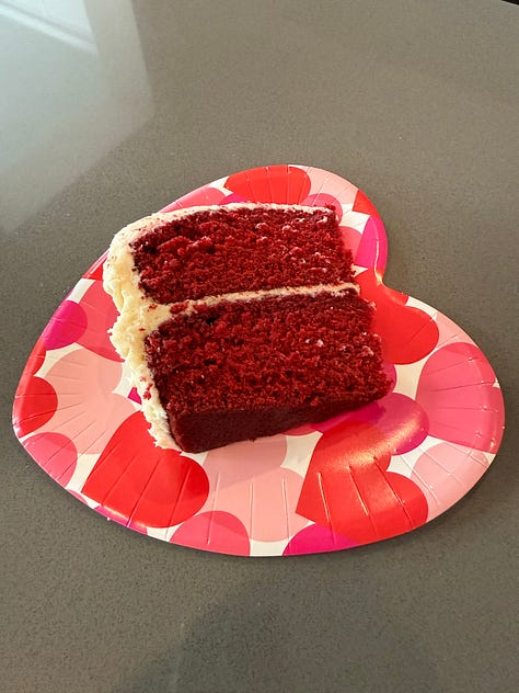 Watching: The White Lotus Season 3 on Max (I love this show so much and this season does not disappoint. After I caught up on the first three episodes last week, I could not wait for last night’s episode to come out. But I have too many thoughts about this show to put here right now—especially about the three lady friends, aka the “cougars” (not mountain lions), who are on vacation together (btw—are they in their late 30s, mid 40s or early 50s? ‘cause that really does matter especially if we are considering them to be “old,” or maybe it matters to me because I am fifty-one and have a LOT to say about this whole topic from more than one angle)…like I said, too many thoughts which I know is also the point and one of the magical things about this show. Anyone who watches it will have many thoughts, different thoughts, and that makes for such great conversation. In fact, I would rather talk about it than write about it. I wish I still went to a place with a water cooler every day, because today is a day when I would absolutely stand around it and debate all that happened on the show last night with my co-workers. Maybe I’ll pop over to my neighbors house, have a cup of tea and chat with her about it. Oh, speaking of my neighbor, on Saturday, her sister brought me a slice of red velvet cake. When I met for the first time last week and she heard it’s my favorite cake (next to cheesecake), she made sure to save a piece for me when she baked one and got it to me via her sister. It was delicious.)