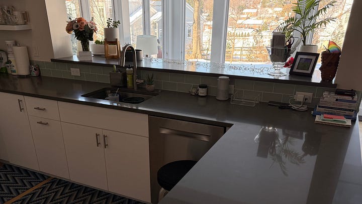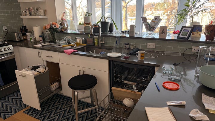 It is in moments like this that I find myself procrastinating (on the things I love doing like writing) and avoiding (the things I don’t love doing as much like cleaning up the thing sitting all over my kitchen counter, the trash waiting to go out to the curb, and the laundry sitting in piles on the floor). Maybe after all the upheaval and subsequent positive rearrangement I experienced last week, I am now in some kind of an emotional hangover.