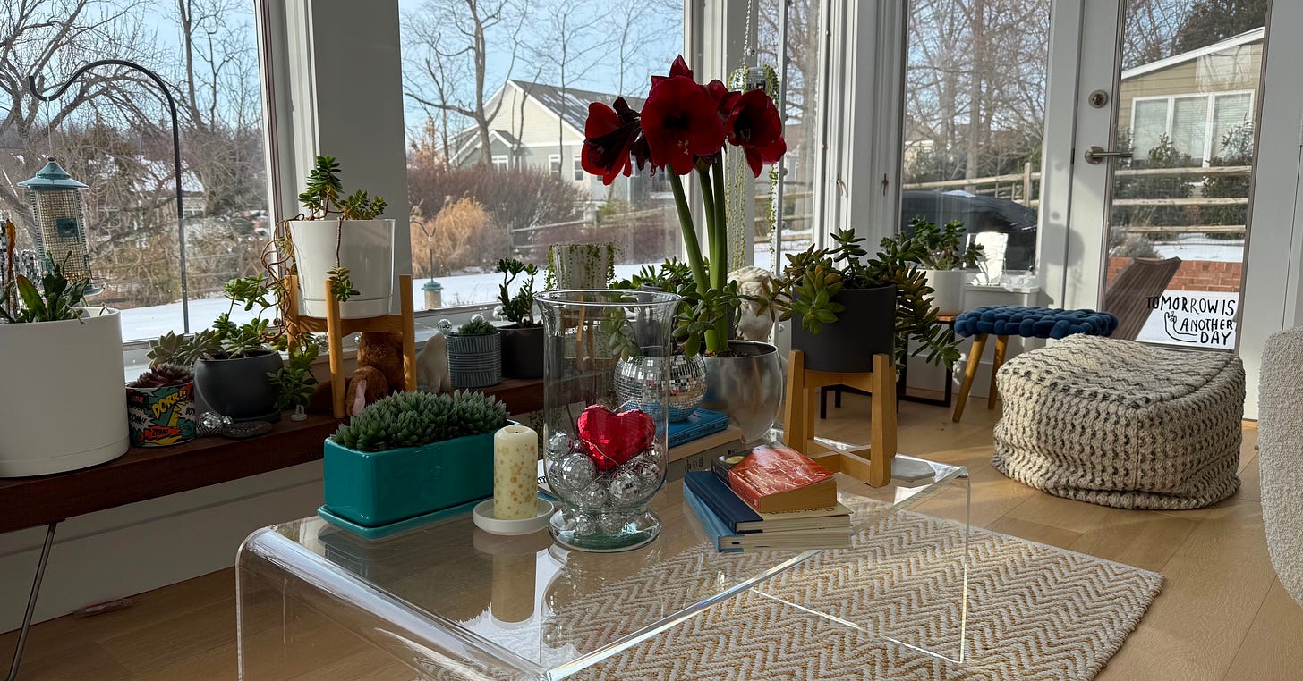 Watching: I did not watch the Super Bowl, take in the halftime show, or see any of the ads. Not for any ideological reasons, but because I had a prior commitment, my bi-monthly Zoom group. I also I don’t have a TV in my house or a subscription to live TV anything. At some point, I may watch a video on YouTube of the Bad Bunny halftime performance. Or I may not. Again, not as any kind of statement about the content or a dismissal of what, by all accounts I read, was a truly joyful celebration of the best of who we are together, but because right now, I am giving myself the space to not do something and that feels really, really good.