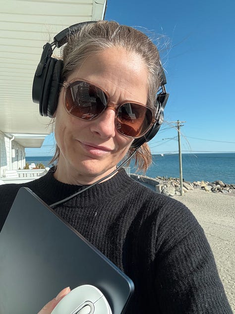 So today, I know exactly what “the life I love” means to me. It means celebrating my bestie’s teenage daughter (whom I have known since she was one month old and who was performing in her high school’s musical) one night and catching up with a woman in her sixties (whom I met only five months ago when we became roommates after we started a training program together) the next night. It means sitting at a dining table to write with a view of a snow-and-ice-covered meadow one day and driving into Manhattan the next day but not before making a pit stop to edit audio outside on a deck by the sun-drenched seaside. It means trusting the multiple cups of hot tea, lemon and honey will help restore my voice (that had been reduced to a whisper in the deep, freezing cold) in time for the meeting I have (and which, thankfully, got pushed out a few days). It means coming home to sit in my sunroom and watching the birds dance outside of my window before I meet up with my friends before I head out to do a version of all that all over again.